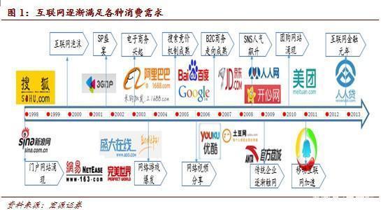Yahoo,Amazon这两大互联网巨头同样于1995年成立,Google成立于1998年,因此1995年也被称为世界互联网商业元年。在这20年中,以消费为主线,互联网迅速渗透进人们生活的各个领域,极大的影响了人们生活和消费的习惯。
