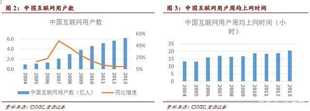 经过20年的发展,消费互联网的渗透率极高,用户数增长已经放缓。根据中国互联网络信息中心的数据,2013年中国互联网用户数已达6.18亿,同比增速已经下滑至个位数,用户周均上网时长也已经趋向稳定,这两个指标显示用户数和用户活跃度进一步提高的空间有限。