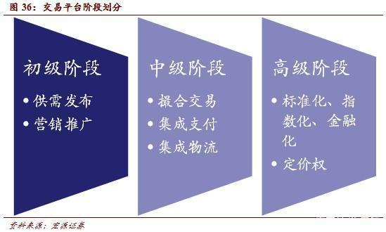 交易平台是目前比较常见的产业互联网应用的模式。交易平台不仅仅体现为简单B2B电商,更体现为对产业信息的集成、产业技术的交易、产业商品定价的话语权。显示供求信息仅仅是交易平台最原始的功能;交易的撮合、支付的集成、线下物流仓储的集成是交易平台的中级模式;而对产品标准化、指数化、金融化,进而影响行业商品的定价是交易平台的高级模式。