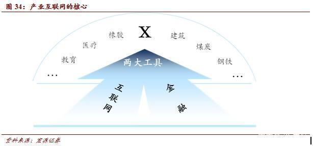 在产业互联网的大潮背后,互联网+金融+X是其核心。我们相信,产业互联网的大势将很快在各个产业渗透蔓延,无论是教育、医疗等较轻的服务业,还是橡胶、建筑、煤炭、钢铁等较重的工业,均将感受到这场变革。其中,互联网和金融将成为产业互联网在各个领域发展的两大工具,互联网对应的是信息流,诠释了全新的技术手段(如云计算、大数据、移动互联网等)和思维模式(如长尾、众包、免费等),金融不仅体现在支付结算方面,而且还应用于资金融通,通过资金的流通引导其他生产要素的流动,推动整个产业的快速发展。